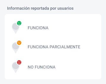 - Íconos naranjas: El punto está en funcionamiento, pero se ha reportado que uno de los enchufes no está operativo en su totalidad.