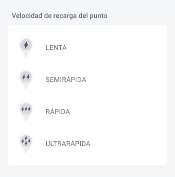 - 1 rayo: Indica un punto de recarga de carga lenta, con una potencia que oscila entre 3 y 7 kW.