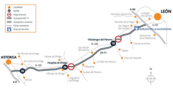 - Salida 36: Salida a Astorga – La Bañeza. Enlace con N-6