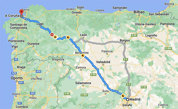La mejor ruta para ir de Madrid a La Coruña es muy sencilla evitando carreteras nacionales: