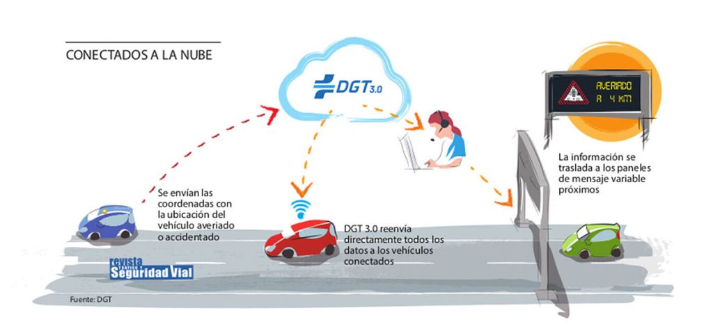 La plataforma DGT 3.0 ya está recibiendo las señales que indican la ubicación de los vehículos con problemas en la carretera.